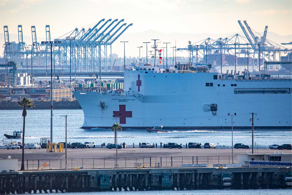 The Port of Los Angeles has become a significant driver behind California’s response to the coronavirus. The USNS Mercy hospital ship carrying 800 Navy medical personnel and support staff docked at the port’s facilities on March 27. It is serving as a referral hospital for patients NOT infected with COVID-19. Instead the ship handles overflow of acute trauma cases and other urgent needs allowing shore-based hospitals to focus medical care resources on the treatment of coronavirus patients.