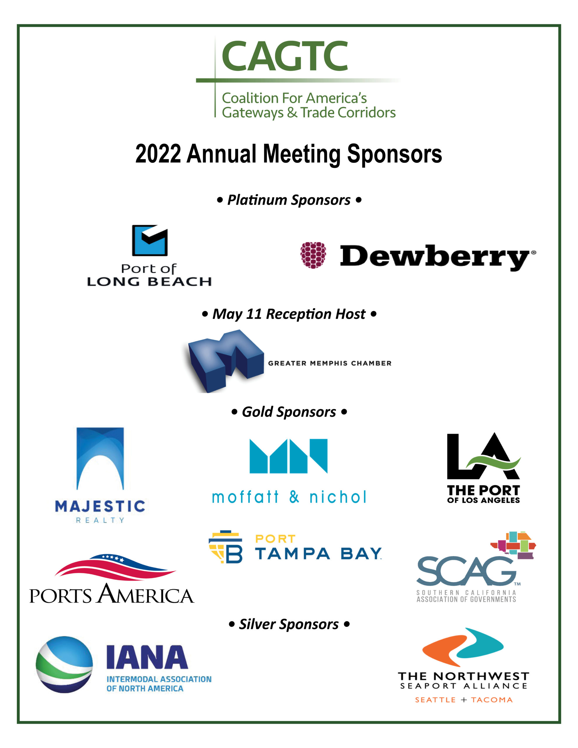 It has been three years since the members of the Coalition for America’s Gateways & Trade Corridors last gathered in Washington, D.C. for our Annual Meeting. From lockdowns to product shortages and strained supply chains, the impacts of the pandemic have been widespread throughout the freight industry. A bright spot, however, is the passage of the Bipartisan Infrastructure Law (BIL) in 2021, which contained an unprecedented amount of funding for goods movement projects and important policy provisions championed by CAGTC. Importantly, the pandemic has elevated the public perception and recognition of freight supply chains from rarely discussed concepts to front-page news, reinforcing our advocacy work and broadcasting our important message to a wider audience.
