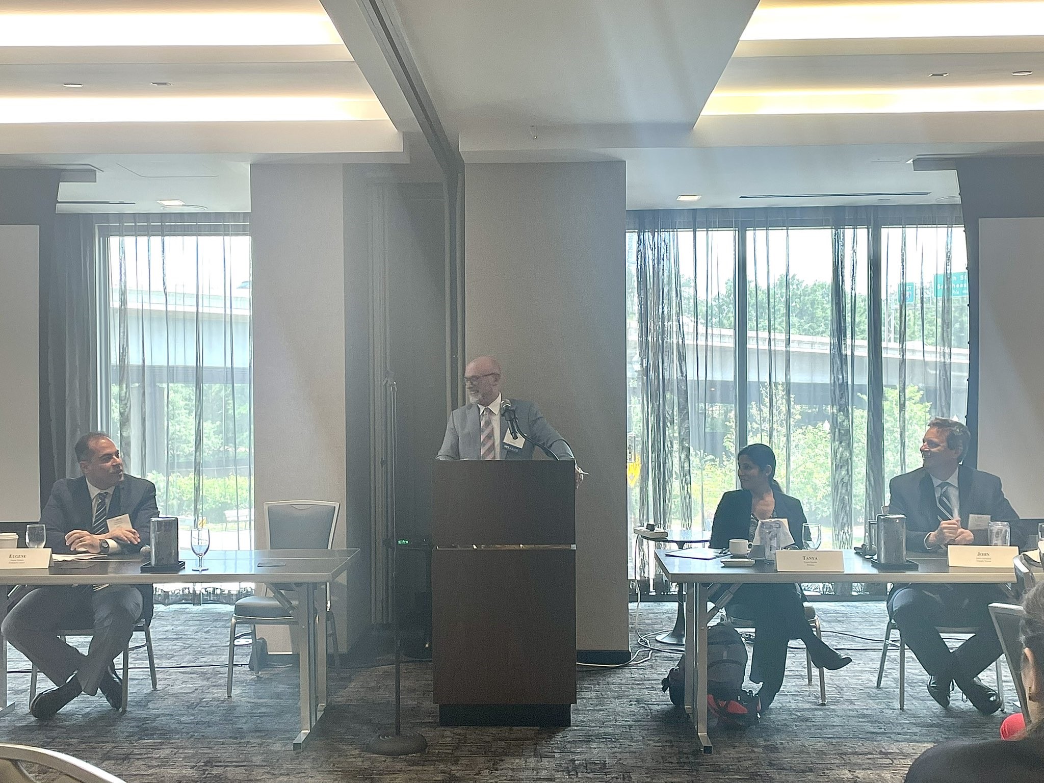 The meeting began with an off-the-record conversation with staff from the relevant Congressional authorizing committees. Jordan Baugh, Professional Staff on the Senate Committee on Environment and Public Works; Michael Davisson, Professional Staff on the Senate Committee on Commerce, Science, and Transportation; Jackie Schmitz, Democrat Staff Director of the House Committee on Transportation and Infrastructure Subcommittee on Highways and Transit; and Cheryle Tucker, Republican Staff Director of the House Committee on Transportation and Infrastructure Subcommittee on Highways and Transit participated in the panel and shared insights into BIL oversight and reauthorization priorities.
