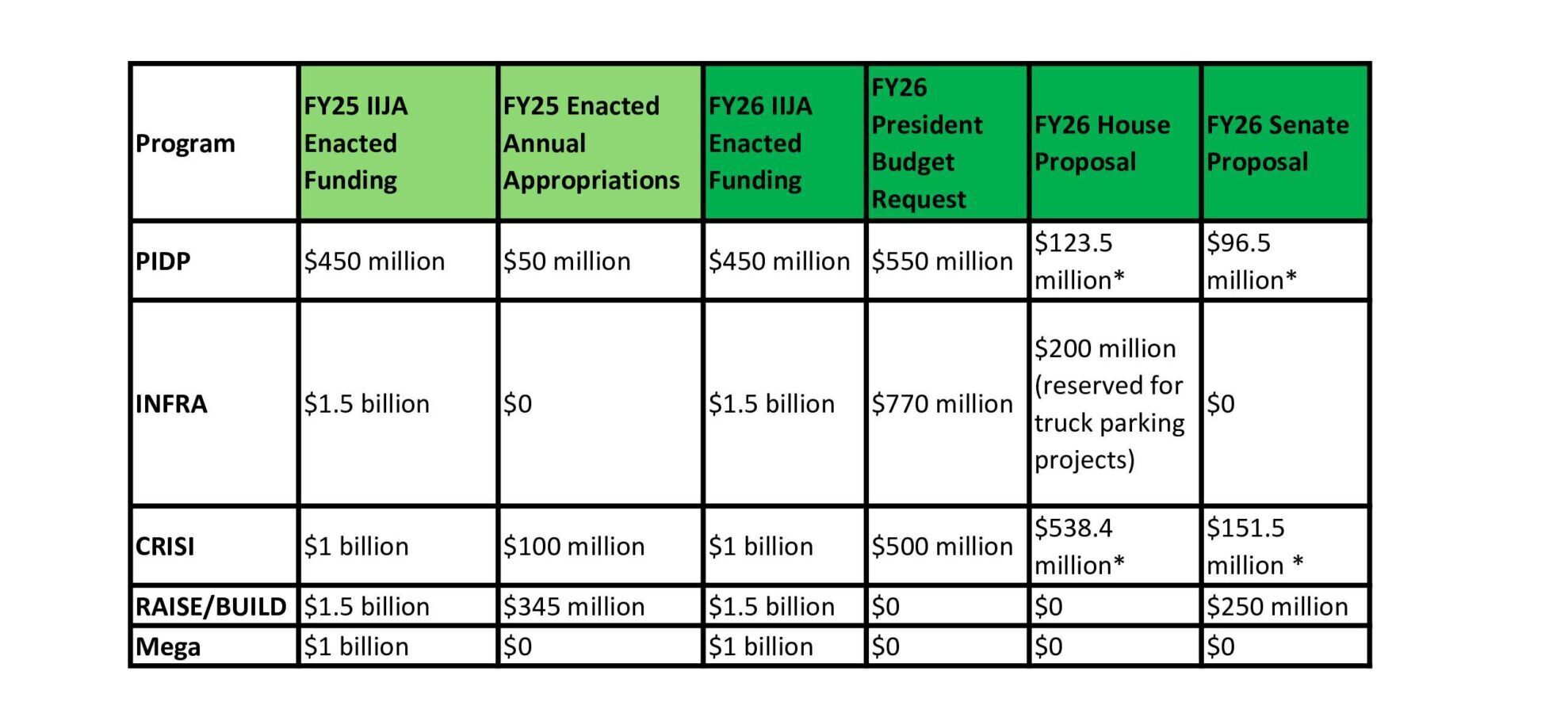 - PIDP: $123.5 million in FY26 funds in addition to the $450 million provided by the IIJA, totaling $573.5 million (includes funding set aside for earmarks).